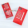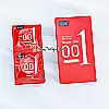 Bao cao su này sở hữu tông màu đỏ nổi bật, gây ấn tượng ngay từ ánh nhìn đầu tiên. Dòng chữ “Super thin 0.01” in lớn trên nền đỏ thể hiện rõ điểm mạnh – độ mỏng chỉ 0.01 mm, giúp mang đến cảm giác như thật khi sử dụng.