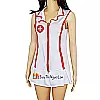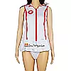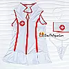 Trang phục được thiết kế ôm dáng, tông màu trắng phối đỏ nổi bật, tôn lên đường cong cơ thể một cách quyến rũ. Áo liền váy có khóa kéo phía trước giúp dễ dàng điều chỉnh mức độ gợi cảm theo ý muốn. Chất liệu vải mềm mại, co giãn tốt, mang lại cảm giác thoải mái khi mặc và không gây khó chịu cho da.